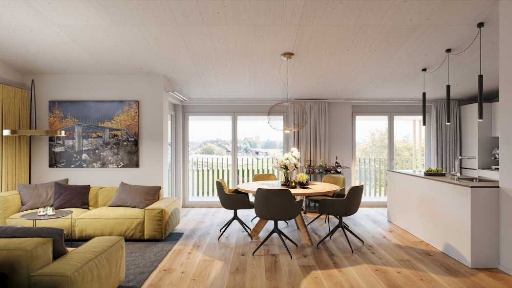 Freuen Sie sich auf eine hochwertige Ausstattung, die keine Wünsche offenlässt. Der vielseitige Wohnungsmix von 2.5- bis 4.5-Zimmer-Wohnungen bietet passende Grundrisse für Singles, Paare und Familien. Die Zufahrt über eine verkehrsberuhigte 30er-Zone sorgt für ein angenehmes und sicheres Wohnumfeld. Ein Neubauprojekt, das Ruhe, Natur und zeitgemässen Wohnkomfort ideal verbindet – ein Ort zum Ankommen und Wohlfühlen.