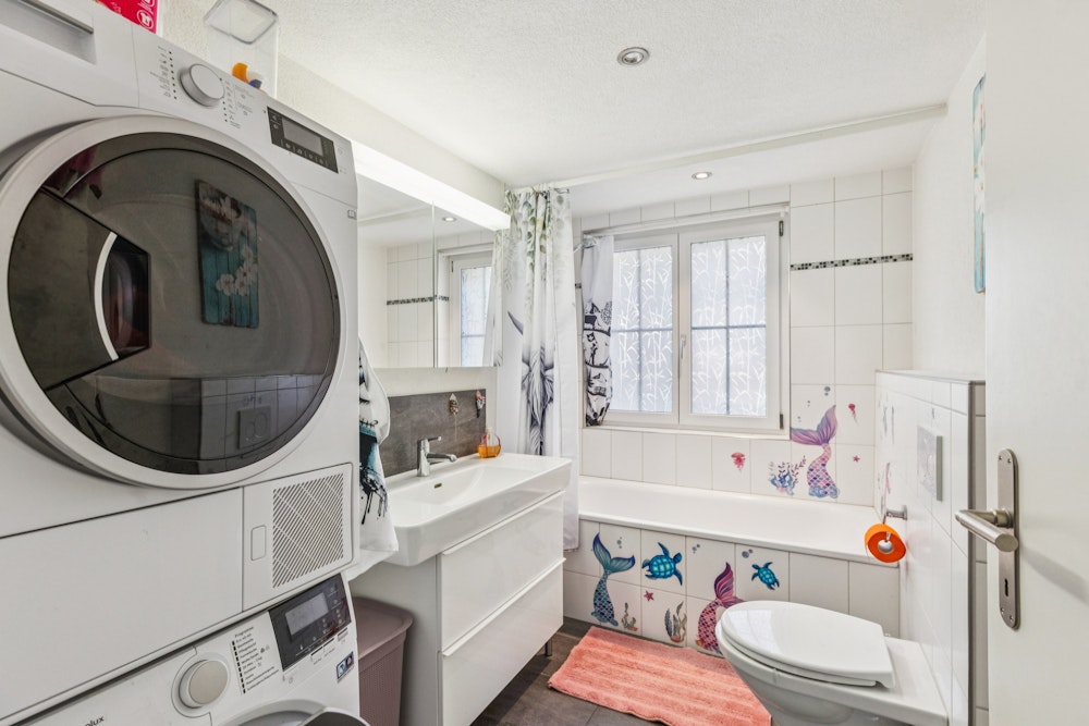 Zur Dachwohnung gehört ein Balkon mit 13 m2. Die 4.5-Zimmerwohnung hat eine sehr grosse Terrasse mit 92 m2. Für beide Wohnungen steht im Untergeschoss je ein Kellerabteil mit 5 bzw. 6 m2 zur Verfügung.